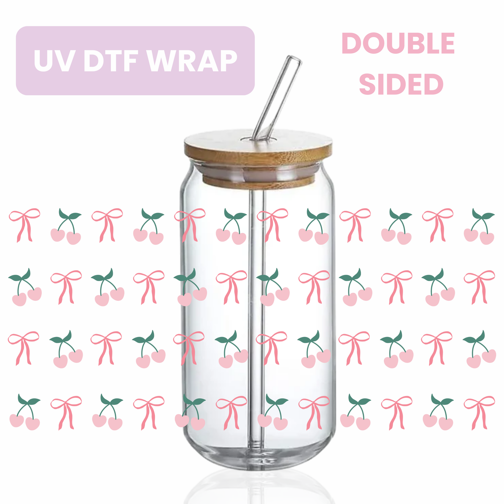 water only. Make sure the cup/tumbler is dry. - Carefully align and wrap the UV DTF around the glass. Trim any excess film as needed to ensure a proper fit and prevent overlapping when applying the wrap to the glass cup.