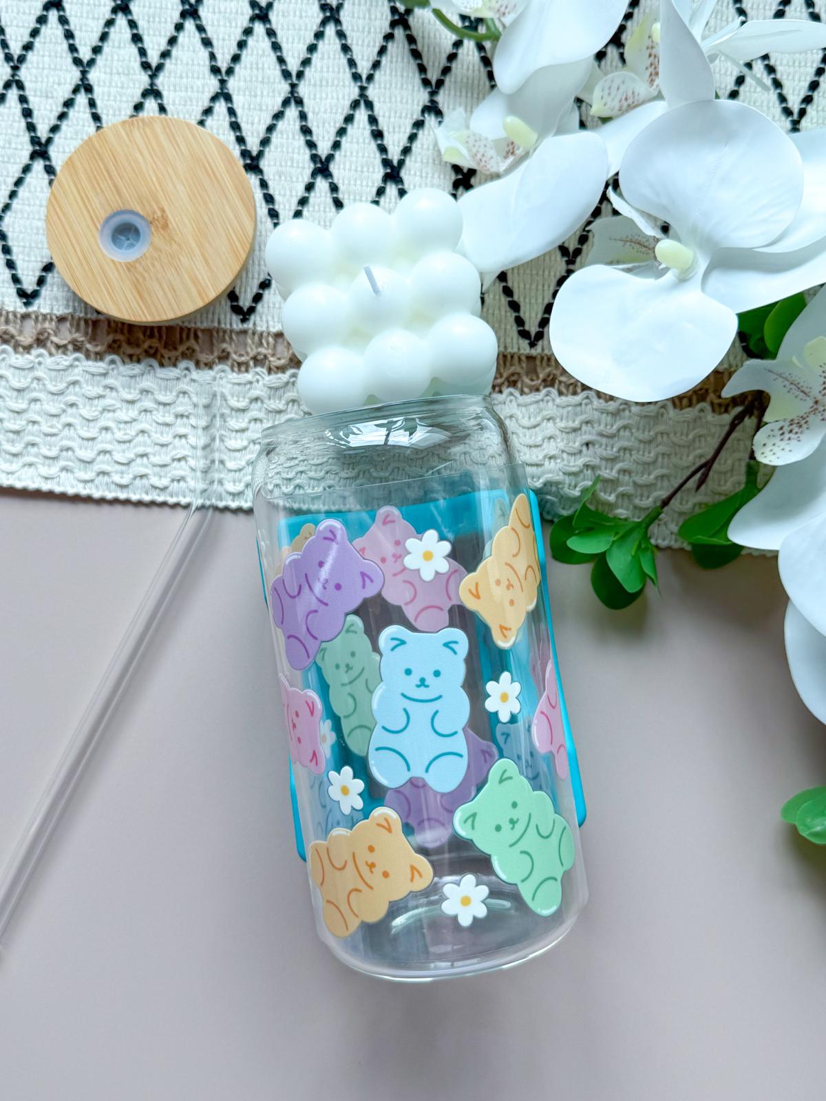 This double-sided gummy bear glass cup adds a pop of color and fun to any drink. With its quirky design and vibrant hues, it's sure to put a smile on your face. Get ready to sip in style!