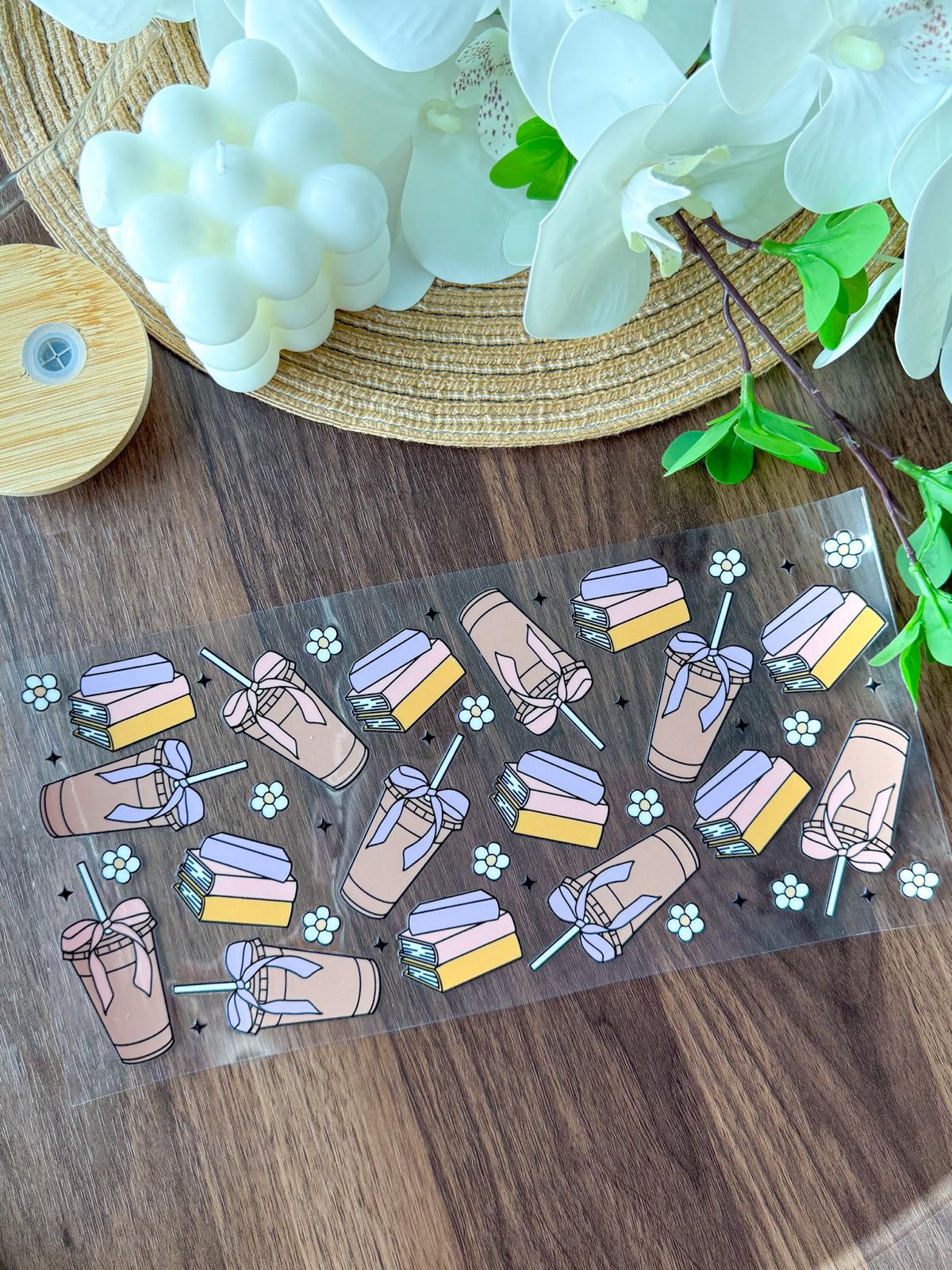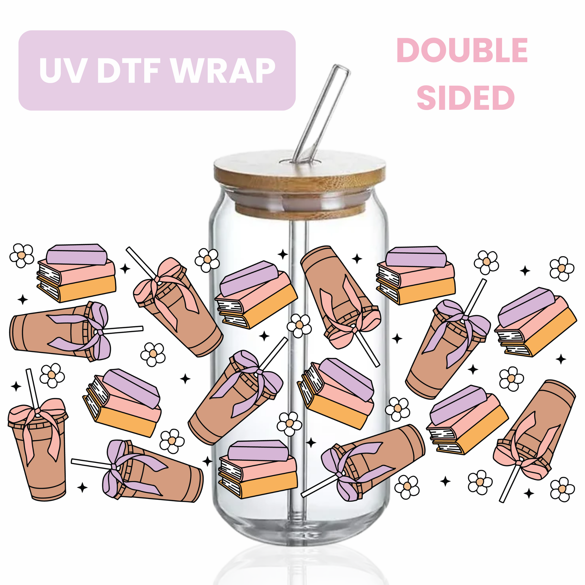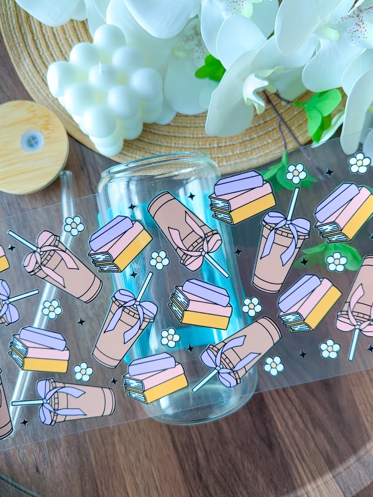 Indulge in our Floral Book & Coffee glass cup. This design is perfect for bookworms and caffeine enthusiasts alike. Make a statement with your next coffee break!