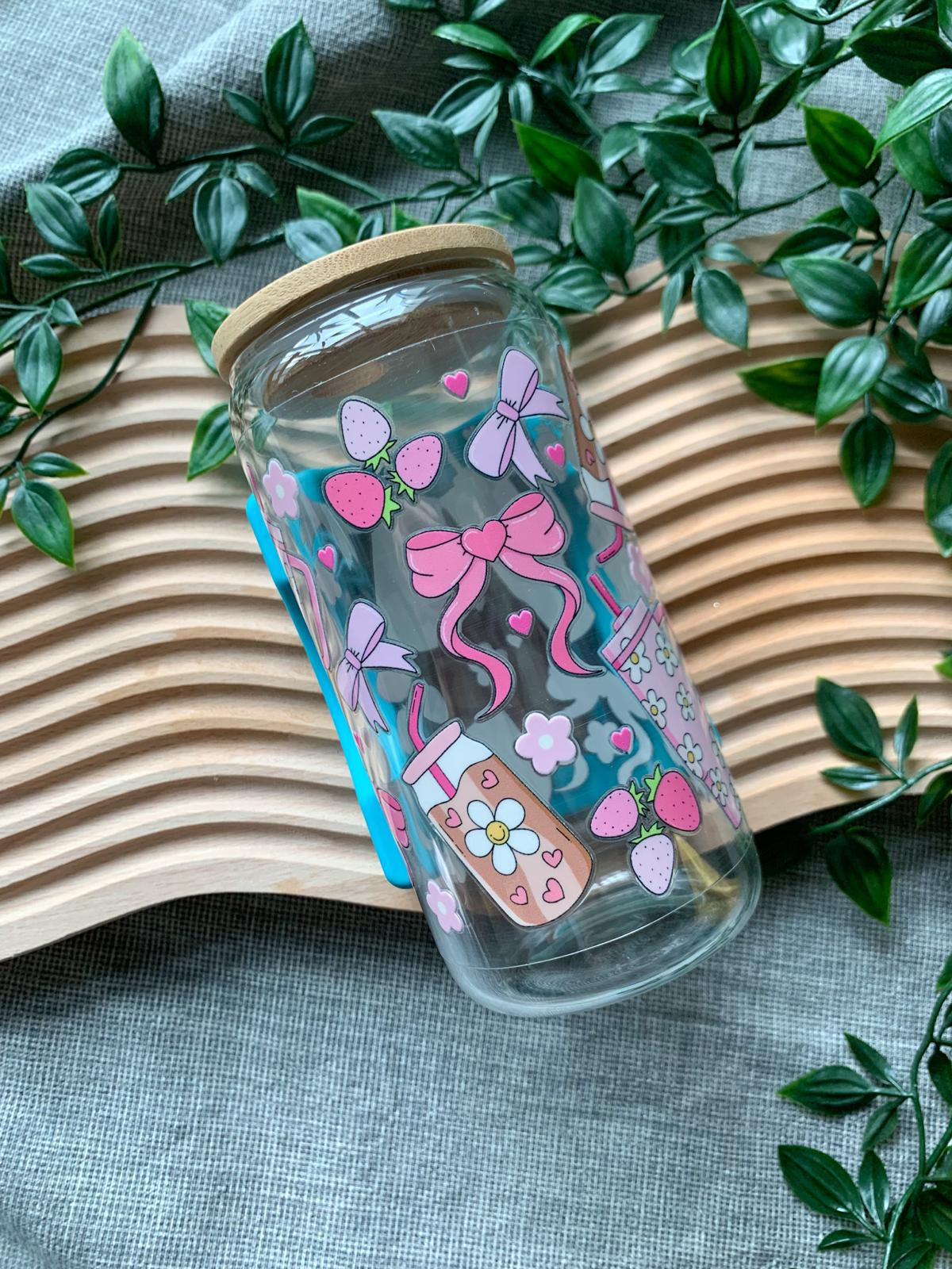 Get your daily essentials in one stylish design with our Pink Bow Essentials! This quirky design showcases your must-haves and adds a playful touch. Say goodbye to boring cups and hello to cutesy Pink Bow Essentials!