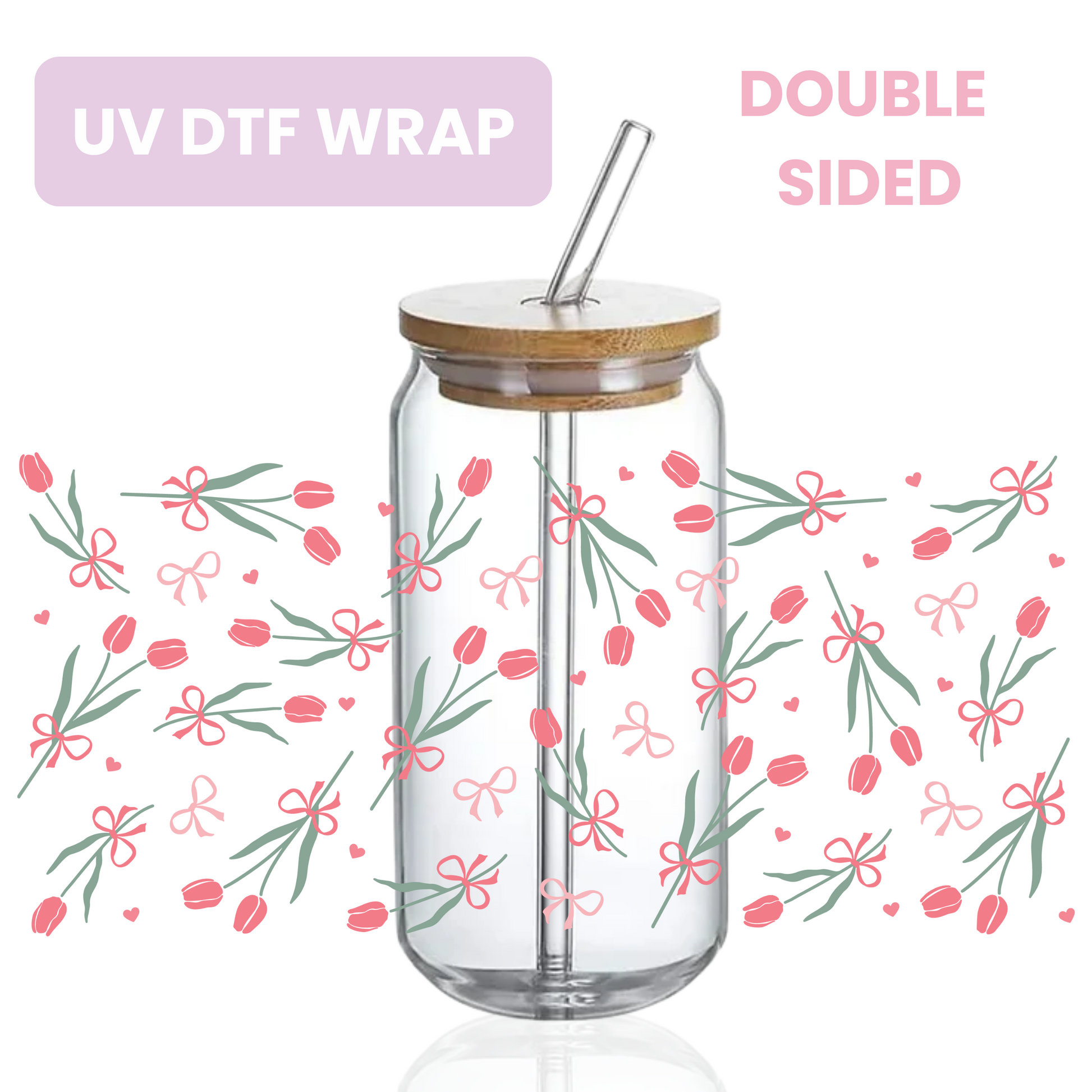 water only. Make sure the cup/tumbler is dry. - Carefully align and wrap the UV DTF around the glass. Trim any excess film as needed to ensure a proper fit and prevent overlapping when applying the wrap to the glass cup.
